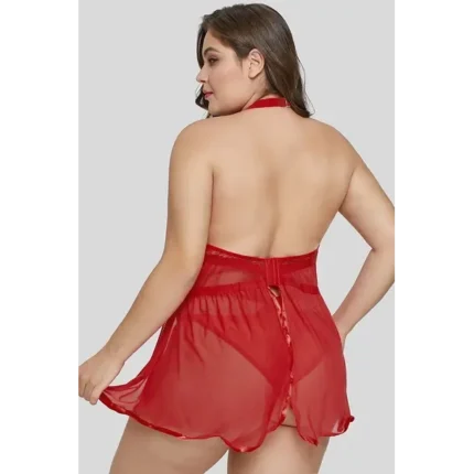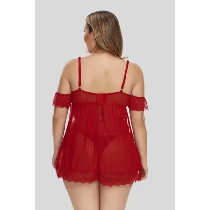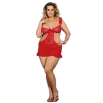 Babydoll Anastassia es una sensual prenda erótica de encaje rojo que se ajusta al cuerpo. Cuenta con espalda descubierta y apertura en ambos lados de la cintura. Su sosten con arco permite realzar el busto levemente, cuenta además con tiras ajustables, lazo entre los pechos con colgante en forma de corazon y cinta plisada al igual que borde de falda inferior.