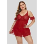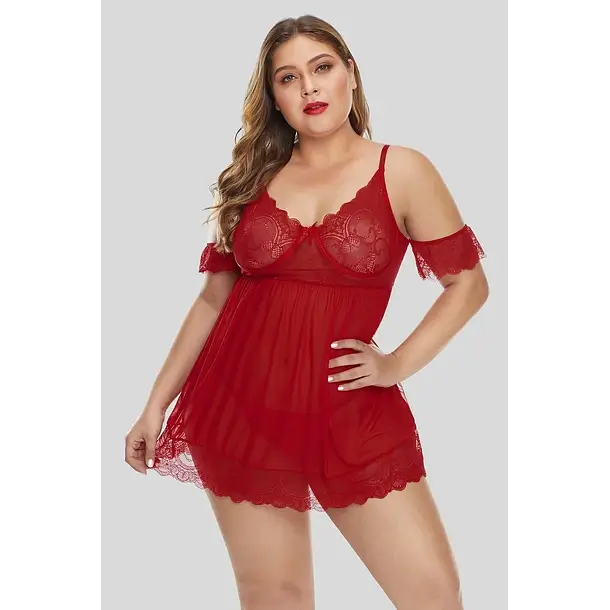 Marina es un Babydoll rojo que mezcla el encaje con la tela semitransparente para jugar con texturas. Su top contiene detalle de encaje a la altura de los hombres y sostén con barba metálica para mayor soporte, tirantes de hombro y espalda ajustables para mejor calce.