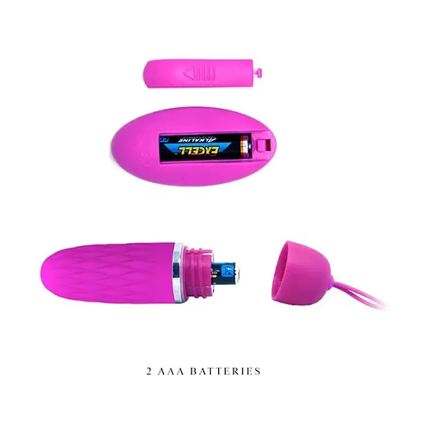SKU: 44601440400 Categorías: Balas Vibradoras, Para Ellas Etiquetas: 3 Intensidades de vibración, 9 tipos de pulsaciones, Alcance de hasta 10 mts, Color: Fucsia, Marca: Pretty Love, Material: Silicona – ABS, Resistente al agua (no sumergible), Usa 2 Baterías AAA (no incluidas)