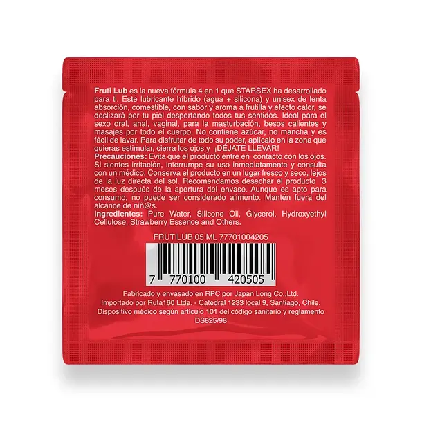 Fruti Lub es la nueva fórmula 4 en 1 que STARSEX ha desarrollado especialmente pensando en la versatilidad de cualquier encuentro. Es un lubricante híbrido, a base de agua y silicona, de lenta absorción, compatible con juguetería y preservativos. Posee efecto calor, sabor y aroma a frutilla y una ligera consistencia, fácil de limpiar y no pegajosa que permite realizar masajes localizados en cualquier zona erógena del cuerpo. Además lubrica y estimula en cualquier encuentro sexual ya sea oral, anal o vaginal. starsexlub